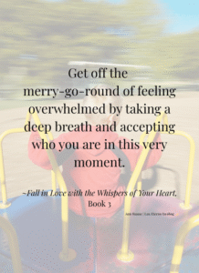 Get off the merry-go-round of feeling overwhelmed by taking a deep breath and accepting who you are in this very moment. ~Fall in Love with the Whispers of Your Heart, Book 3 Overwhelm often spins us in circles. Let’s pause. Breathe deeply. Remind yourself: you don’t need to do or fix anything to be worthy.…