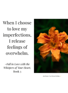 When I choose to love my imperfections, I release feelings of overwhelm. ~Fall in Love with the Whispers of Your Heart, Book 3 Let this be your inner whisper today. Self-compassion is the balm that soothes the spiral.
