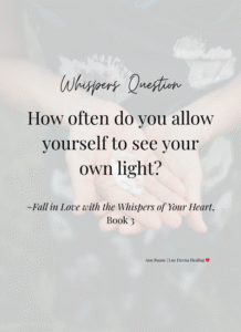 Whispers Question How often do you allow yourself to see your own light? ~Fall in Love with the Whispers of Your Heart, Book 3 Questions for further gentle reflection: ✨ What do others admire in you? ✨ What lights you up? ✨ What would it feel like to stand in that light, unapologetically?