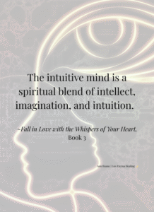 The intuitive mind is a spiritual blend of intellect, imagination, and intuition. Fall in Love with the Whispers of Your Heart, Book 3 Your intuitive mind is a quiet genius—a blend of wisdom, wonder, and insight. It doesn’t shout. It whispers.