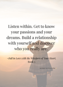 Listen within. Get to know your passions and your dreams. Build a relationship with yourself and discover who you really are. Fall in Love with the Whispers of Your Heart Book 3 Surrender isn’t about giving up—it’s about returning to your truth. Listen within. Reconnect with your passions. Rebuild the bridge to who you are.